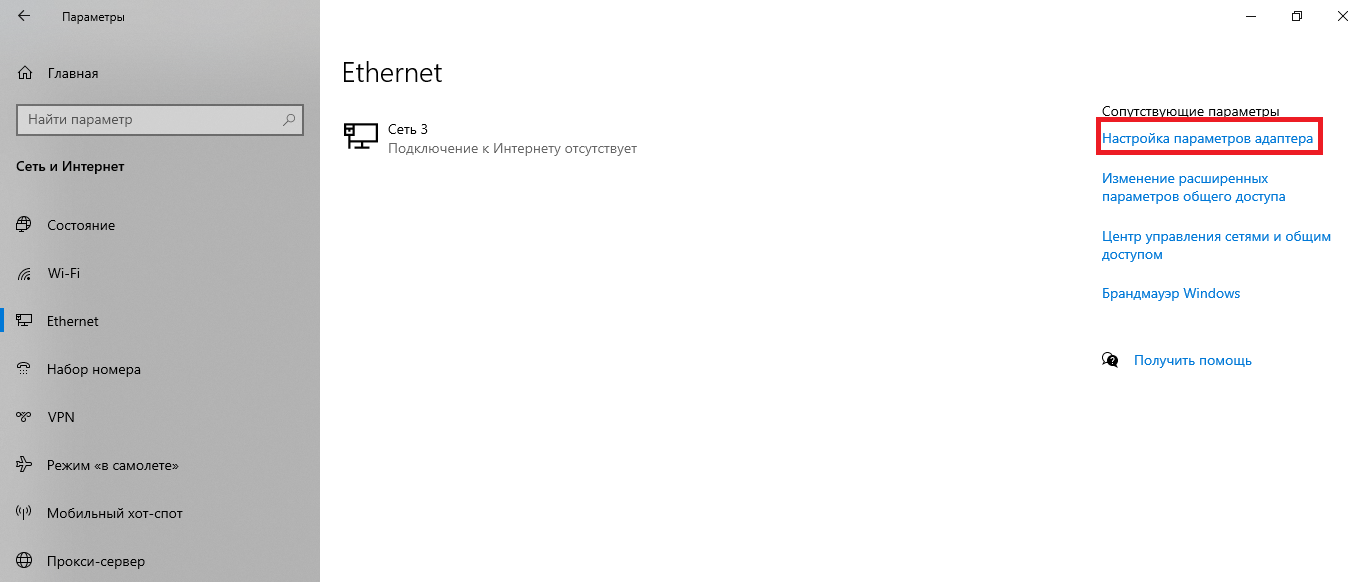 У лівій нижній панелі знайдіть значок «Пуск», натисніть на нього лівою кнопкою мишки, після чого в меню що розкрилося оберіть пункт «Параметри»: В «Параметрах» оберіть пункт «Мережа та Інтернет»: У лівій частині вікна, що з'явилося у меню «Мережа та Інтернет», обираєте пункт «Ethernet»: У правій частині вікна, що з'явилося у меню «Ethernet», обираєте пункт «Налаштування параметрів адаптера»: У вікні «Налаштування параметрів адаптера» знайдіть значок «Ethernet» (або ще може називатися «Підключення по локальній мережі») і натисніть на ньому правою кнопкою миші. В меню, що відкрилося оберіть пункт «Властивості»: Ви повинні побачити вікно «Ethernet: властивості». У списку «Зазначені компоненти використовуються цим підключенням:» відключіть пункт «IP версії 6 (TCP/IPv6)», далі оберіть мишкою «IP версії 4 (TCP/IPv4)» та натисніть кнопку «Властивості»: У вікні «Властивості: IP версії 4 (TCP/IPv4)» налаштуйте Ваше з'єднання з локальної мережі згідно з додатком до договору: - «Використовувати наступну IP адресу» - вкажіть IP-адресу, маску підмережі та основний шлюз (див. додаток до договору); - «Використовувати наступні адреса DNS-серверів» - вкажіть IP-адресу, маску підмережі та основний шлюз (див. додаток до договору). TCP/IP налаштований, тепер натисніть кнопку «OK». Перевірте підключення до мережі Інтернет (відкрийте браузер та спробуйте зайти, наприклад, на youtube.com) Якщо Вам не вдалося налаштувати Інтернет-з'єднання, зверніться до цілодобової служби підтримки за телефонами: (068)-908-54-45, (093)-908-54-45.