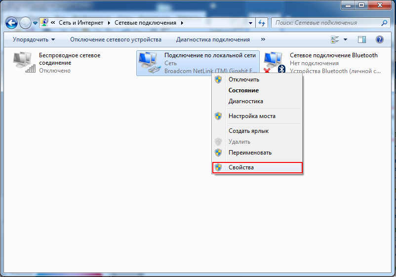 У лівій нижній панелі знайдіть значок «Пуск», натисніть на нього лівою кнопкою мишки, після чого в меню що розкрилося оберіть пункт «Панель керування»: На панелі керування клацніть значок «Мережа та Iнтернет»: Далі оберіть пункт «Центр керування мережами і загальним доступом»: У лівій частині вікна, що з'явилося, обираєте пункт «Зміни параметрів адаптера»: У вікні «Зміни параметрів адаптера» знайдіть значок «Підключення по локальній мережі» і натисніть на ньому правою кнопкою миші. В меню, що відкрилося оберіть пункт «Властивості»: Ви повинні побачити вікно «Підключення по локальній мережі - властивості». У списку «Зазначені компоненти що використовуються цим підключенням:» відключіть пункт «Протокол Інтернету версії 6 (TCP/IPv6)», далі оберіть мишкою «Протокол Інтернету версії 4 (TCP/IPv4)» та натисніть кнопку «Властивості». У вікні «Властивості: Протокол Інтернета v4 (TCP/IPv4)» налаштуйте Ваше з'єднання з локальної мережі згідно з додатком до договору: - «Використовувати наступну IP адресу» - вкажіть IP-адресу, маску підмережі та основний шлюз (див. додаток до договору); - «Використовувати наступні адреса DNS-серверів» - вкажіть IP-адресу, маску підмережі та основний шлюз (див. додаток до договору). TCP/IP налаштований, тепер натисніть кнопку «OK». Перевірте підключення до мережі Інтернет (відкрийте браузер та спробуйте зайти, наприклад, на youtube.com) Якщо Вам не вдалося налаштувати Інтернет-з'єднання, зверніться до цілодобової служби підтримки за телефонами: (068)-908-54-45, (093)-908-54-45.